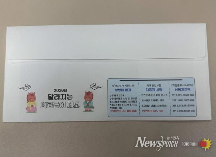 뉴스펀치 박상훈 기자 | 의정부시는 2026년부터 달라지는 의료급여 제도의 핵심 내용을 시민들에게 신속하게 알리기 위해 주요 변경 사항을 담은 맞춤형 우편봉투를 제작했다고 5일 밝혔다.