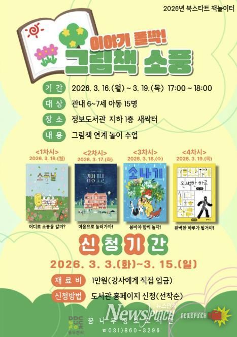 뉴스펀치 박상훈 기자 | 동두천시 꿈나무정보도서관은 3월 16일부터 3월 19일까지 2026년 북스타트 책놀이터 ‘이야기 폴짝! 그림책 소풍’을 운영한다고 밝혔다.