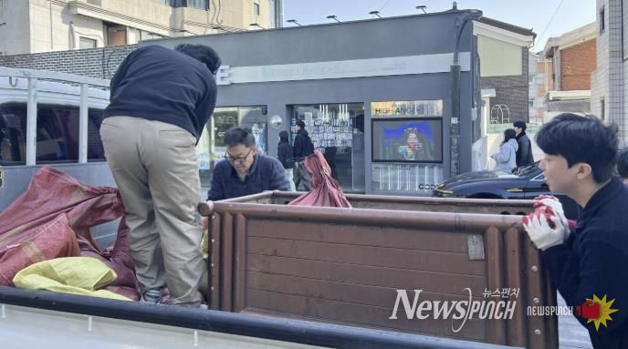 동 화분정비반 직원 6명은 행리단길 일대를 돌며 도시 미관을 해치고 쓰레기 무단투기의 대상이 된 노후 화분 2개를 현장에서 수거하여 즉시 폐기 조치했다.
