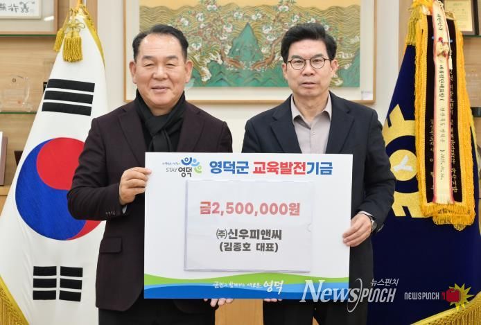 뉴스펀치 박세훈 기자 | 섬유제품 제조업체인 ㈜신우피앤씨의 김종호 대표가 지난 3일 영덕군을 찾아 지역교육 개선에 써달라며 교육 발전 기금으로 250만 원을 기탁했다.
