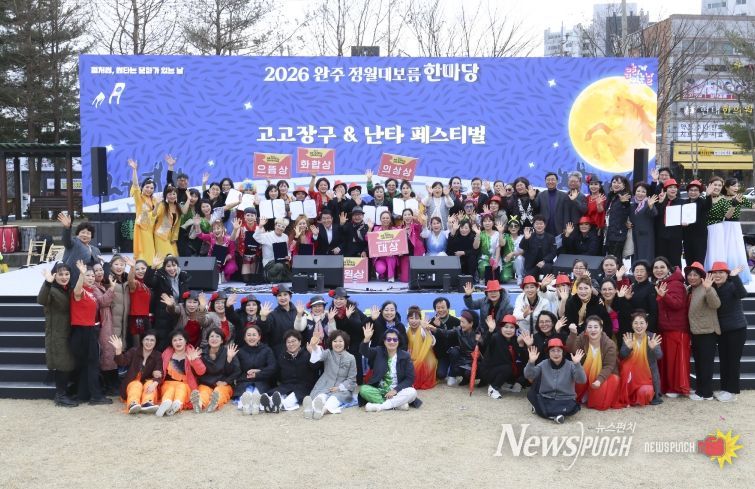 뉴스펀치 최영남 기자 | 완주문화재단(이사장 유희태)은 지난 3월 1일 완주군 둔산공원 일원에서 ‘2026 완주 고고장구&난타 페스티벌’을 성황리에 개최했다.
