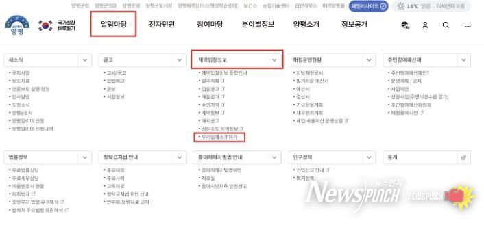 뉴스펀치 박상훈 기자 | 양평군은 지역경제 활성화와 청년기업 및 신생(창업)기업의 공공시장 참여 확대를 위해 양평군청 누리집에 ‘우리업체 소개하기’ 게시판을 신설했다고 밝혔다.