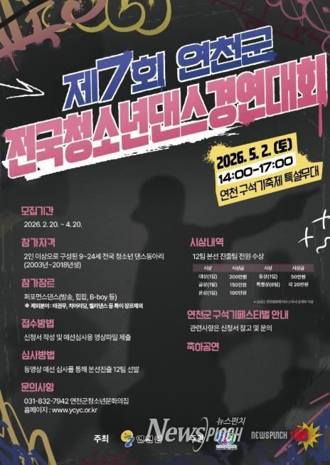 뉴스펀치 박상훈 기자 | (재)연천군청소년육성재단(청소년문화의집)은 전국 청소년들이 꿈과 열정을 마음껏 펼칠 수 있는 무대를 마련하고, 창의적인 문화예술 활동을 확산하기 위해 제7회 연천군 전국청소년댄스경연대회를 개최한다고 밝혔다.