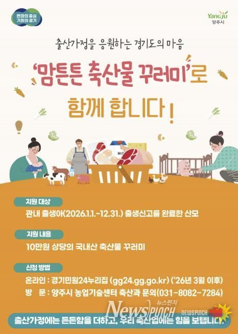 뉴스펀치 박상훈 기자 | 양주시는 출산 가정의 건강 증진과 지역 축산물 소비 촉진을 위해 ‘2026년 맘튼튼 축산물 꾸러미 지원사업'을 추진한다.