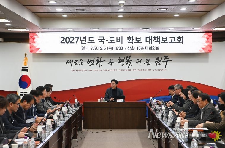 뉴스펀치 조평훈 기자 | 원주시가 내년도 국도비 예산 9,200억 원을 확보하기 위한 본격적인 행보에 나섰다. 시는 5일 오후 4시 30분, 시청 10층 대회의실에서 ‘2027년도 국도비 확보 대책보고회’를 개최하고, 핵심 현안 사업을 추진하기 위한 예산 확보 총력전에 돌입했다.