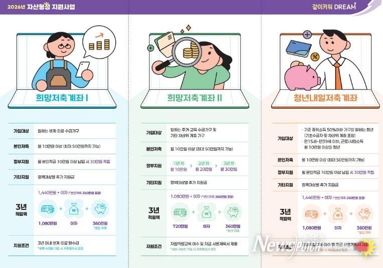 한편 구는 오는 5월 중 기준 중위소득 50% 이하 가구의 만 15~39세 근로 청년을 대상으로 ‘청년내일 저축계좌’ 신규 가입자도 모집할 예정이다. 이와 함께 서울시도 희망두배 청년통장, 꿈나래통장 등 자산형성 지원사업을 이어가고 있다.