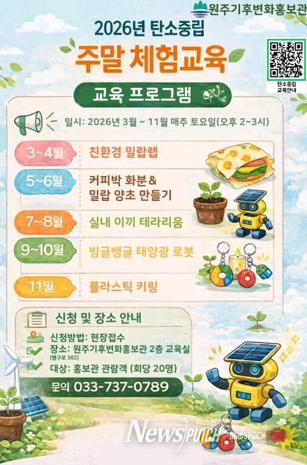 맹순재 원주시 기후대응과장은 “이번 탄소중립 주말 체험교육이 시민들이 환경 문제를 친숙하게 이해하고, 생활 속 탄소중립 실천에 참여하는 계기가 되길 기대한다”라고 말했다.