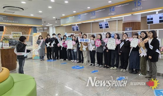 이번 캠페인은 행복민원실 직원 20여 명의 참여로 실시됐으며, 민원실을 찾는 시민들이 보다 친절한 응대를 통해 만족스러운 민원서비스를 받을 수 있도록 공무원의 서비스 마인드를 제고하기 위한 취지로 마련됐다.
