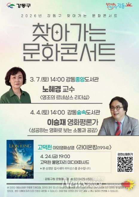 한편, '찾아가는 문화콘서트' 2회차는 오는 4월 4일 강동숲속도서관에서 열릴 예정이며, 영화평론가 이승재가 ‘성공하는 영화로 보는 소통과 공감’을 주제로 강연을 진행한다. 구는 다양한 분야의 전문가를 초청해 인문·예술 프로그램을 꾸준히 선보일 계획이다.