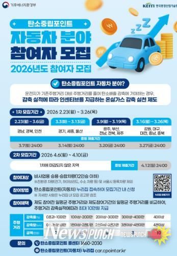 뉴스펀치 김용희 기자 | 광주광역시는 온실가스 감축을 유도하고 탄소중립 실천문화를 확산하기 위해 ‘자동차 탄소중립포인트제’에 참여할 차량을 오는 9일부터 19일까지 선착순 모집한다.