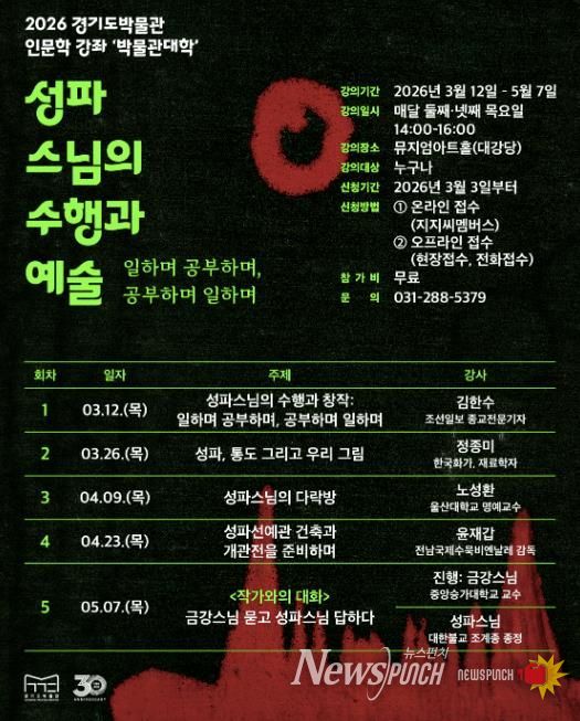 뉴스펀치 박상훈 기자 | 경기도박물관은 오는 3월 12일부터 ‘2026 경기도박물관 박물관대학(인문학 강좌)’을 운영한다. 경기도박물관 박물관대학(인문학 강좌)은 매년 역사·문화와 관련한 시의성 있는 주제를 선정해 도민에게 제공하는 교육프로그램이다.