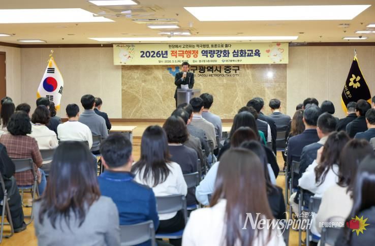 뉴스펀치 조평훈 기자 | 대구 중구는 지난 5일 구청 대강당에서 ‘인공지능(AI) 참여형 적극행정’을 주제로 적극행정 역량 강화 심화 교육을 진행했다.