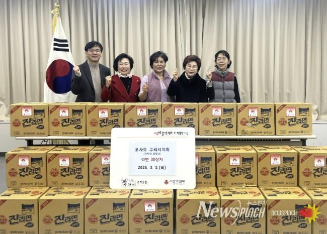 뉴스펀치 박상훈 기자 | 구리시는 지난 3월 5일 ‘조사모(좋은 사람들의 모임)’ 연예인봉사단 구리시지회가 수택1동 행정복지센터를 방문해 지역 내 어려운 이웃을 위해 라면 40개들이 30상자를 기부했다고 밝혔다.
