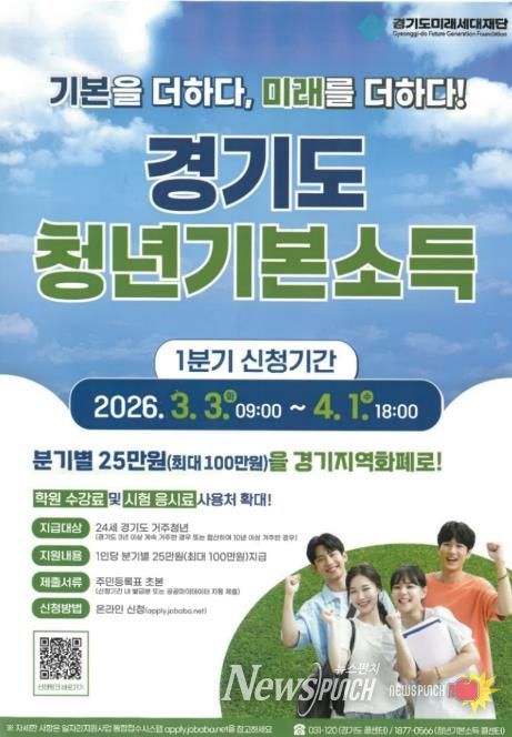 뉴스펀치 박상훈 기자 | 오산시는 24세 청년에게 분기별 25만 원을 지급하는 ‘청년기본소득’ 2026년 1분기 신청을 3월 3일부터 4월 1일까지 접수한다고 밝혔다.