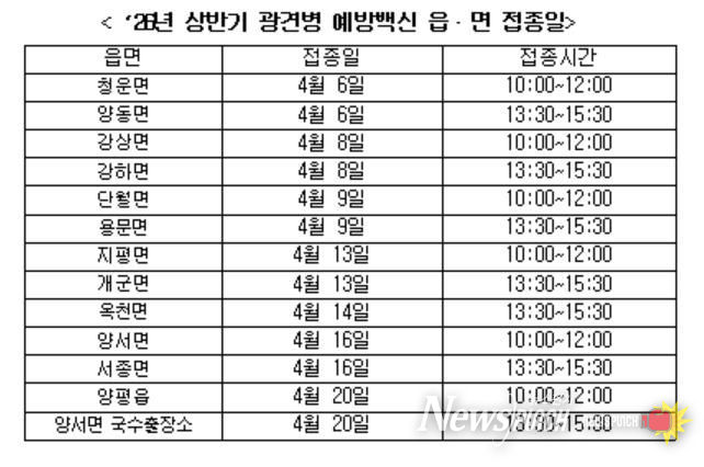 뉴스펀치 박상훈 기자 | 양평군은 오는 4월 6일부터 4월 24일까지 광견병 예방접종을 실시한다고 밝혔다.