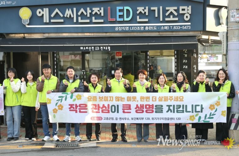 뉴스펀치 최영남 기자 | 고흥군은 지난 5일 고흥읍 일원에서 고독사 예방과 복지사각지대 해소를 위한 주민 참여형 거리 캠페인을 전개하며 촘촘한 복지안전망 구축에 나섰다고 밝혔다.