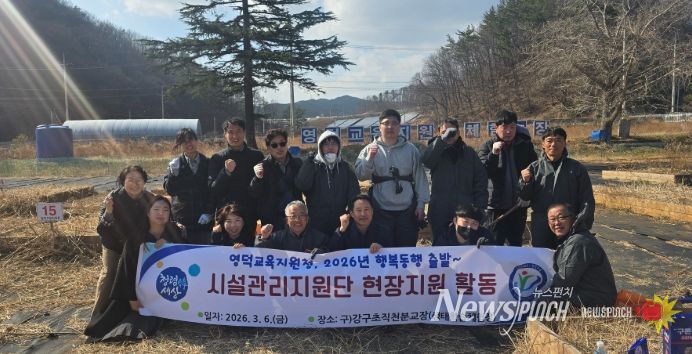 뉴스펀치 박세훈 기자 | 영덕교육지원청은 3월 6일 (구)강구초등학교직천분교장에서 관내 초·중학교 및 영덕교육지원청 시설관리직 8명이 2026년'행복동행 시설관리지원단'지원 활동을 실시했다.