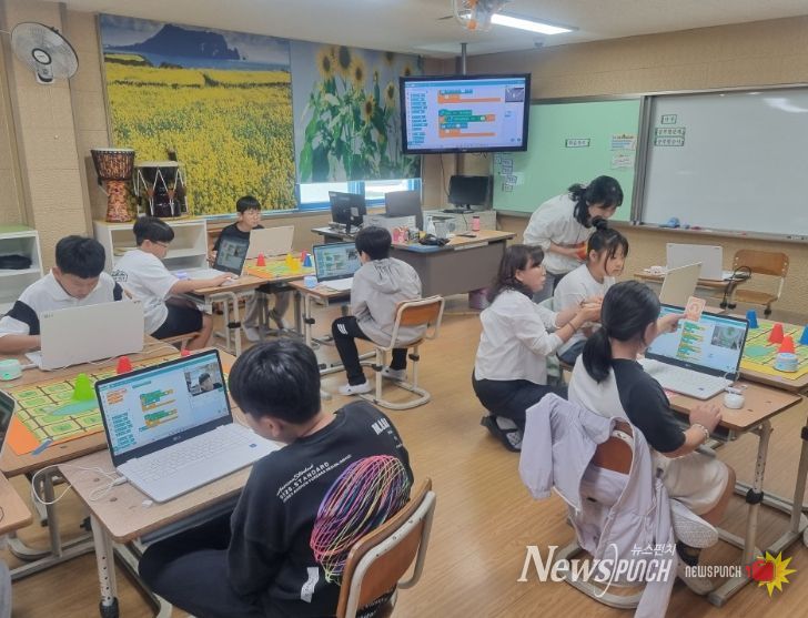 중학교 자유학기제에서는 곡성·석곡·옥과중학교 1학년을 대상으로 ‘블록 코딩 및 AI 리터러시 교육’을 총 17차시에 걸쳐 운영하고 있으며, 오는 7월에는 ‘코딩 자격증 취득 과정’도 진행할 예정이다.