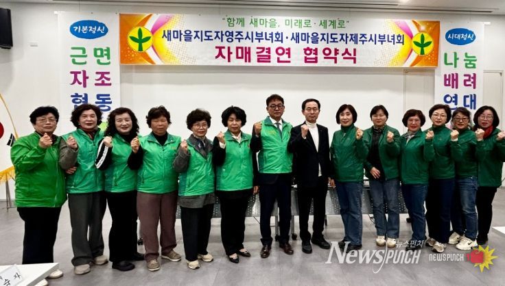 뉴스펀치 박세훈 기자 | 새마을지도자영주시부녀회(회장 정경자)는 지난 6일, 새마을선비회관 2층 강당에서 새마을지도자제주시부녀회(회장 강길선)와 문화·관광 분야 활성화와 지역 간 농특산물 직거래 확대 등을 위한 자매결연 협약(MOU)을 체결했다.