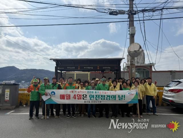 뉴스펀치 김윤걸 기자 | 부산 중구는 지난 5일 안전점검의 날을 맞이해 중구 자율방재단, 안전도시과, 재생건축과 및 동주민센터 직원 등 40여 명이 참가한 가운데 노후 공동주택인 보수아파트 및 중앙공원 일원에서 "안전점검의 날 캠페인”을 펼쳤다.