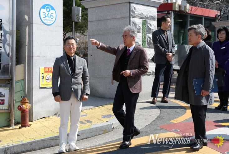 이날 박종훈 교육감은 학생들의 통학로를 직접 걸으며 ▲보행 안전시설 설치 현황 ▲차량 통행 여건 ▲등하교 시간대 안전 관리 상황 등을 세밀하게 살폈다.