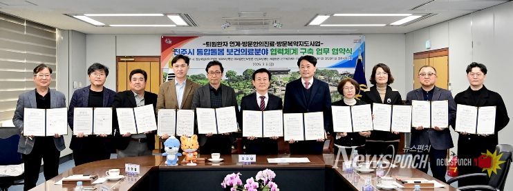 뉴스펀치 박세훈 기자 | 진주시는 6일, 오는 27일부터 본격 시행되는 통합 돌봄사업을 위해 관내 의료기관·단체와 ‘통합돌봄 보건의료분야사업 업무협약식’을 갖고, 본격적으로 지역사회의 통합 돌봄 지원체계 구축에 나섰다.