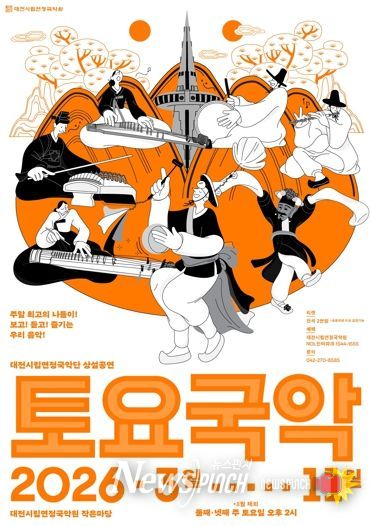 뉴스펀치 이현승 기자 | 대전시립연정국악단의 시그니처 상설공연 ‘토요국악’이 3월부터 11월까지(8월 제외) 둘째, 넷째 주 토요일 오후 2시 국악원 작은마당에서 총 15회에 걸쳐 열린다.