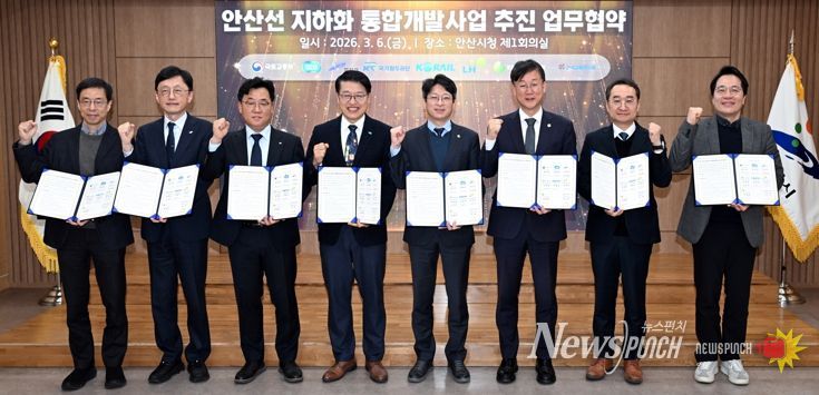 뉴스펀치 박상훈 기자 | 안산시는 지난 6일 오전 안산시청 제1회의실에서 ‘안산선 지하화 통합개발사업’ 진행을 위한 업무협약을 체결하고, 같은 날 오후 기본계획 수립 용역 착수보고회를 개최했다고 7일 밝혔다.