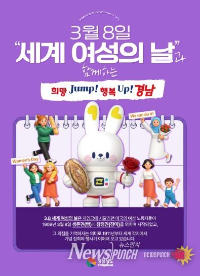 뉴스펀치 박세훈 기자 | 경상남도는 3월 8일 세계 여성의 날을 맞아 여성의 사회 참여 확대와 양성평등 사회 실현을 위한 다양한 정책을 추진하고 있다고 밝혔다.