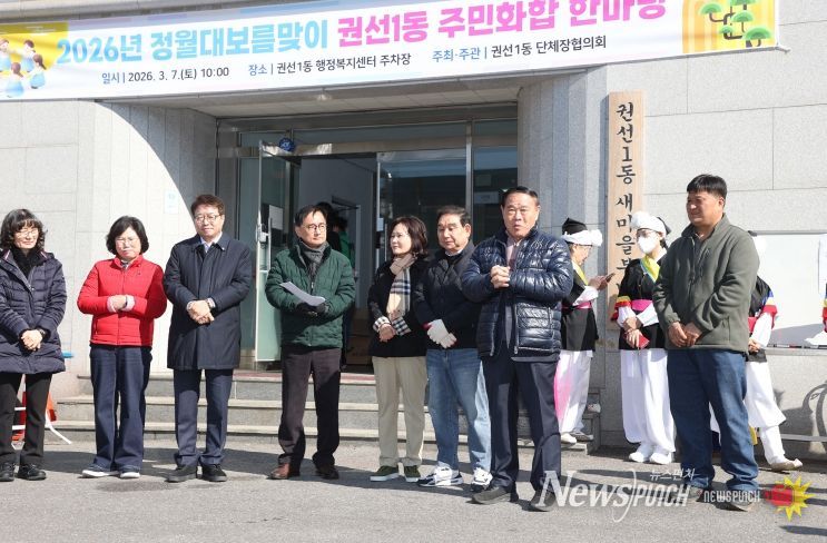 뉴스펀치 박상훈 기자 | 수원특례시의회는 7일 권선1동 행정복지센터 주차장에서 열린 '2026 권선1동 정월대보름 척사대회'에 참석해 주민들과 함께 전통 명절의 의미를 나누며 지역 공동체 화합의 시간을 가졌다.
