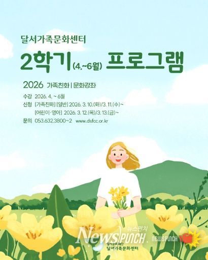 뉴스펀치 조평훈 기자 | 대구 달서구 달서가족문화센터는 2026년 2학기(4~6월) 문화강좌 수강생을 오는 3월 10일부터 모집한다.