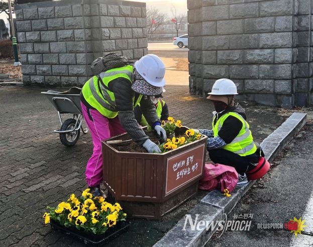 차량과 보행자 통행이 많은 주요 도로변 화분과 시민운동장, 읍면동 행정복지센터 등에 노란 팬지를 심어 거리 환경을 화사하게 조성했다.