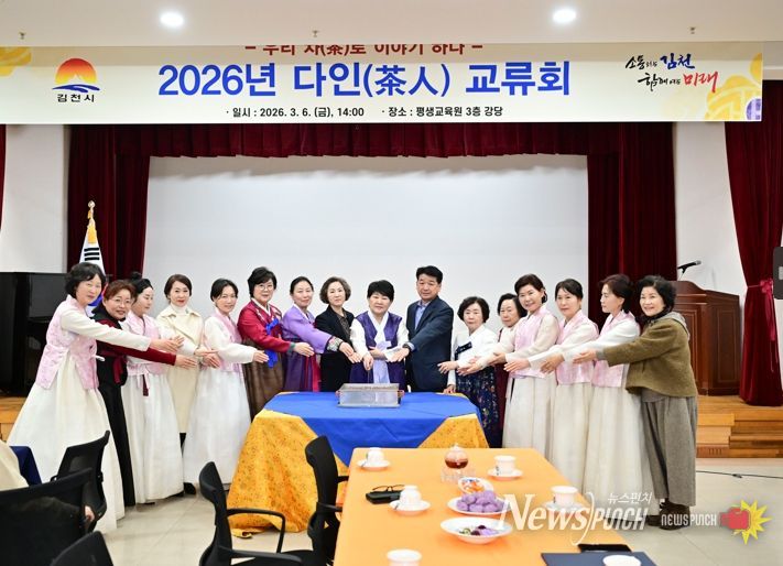 뉴스펀치 박세훈 기자 | 김천시는 지난 6일 오후 2시 평생교육원 3층 강당에서 ‘우리 차(茶)로 이야기하다’를 주제로 2026년 다인(茶人) 교류회를 성황리에 개최했다.