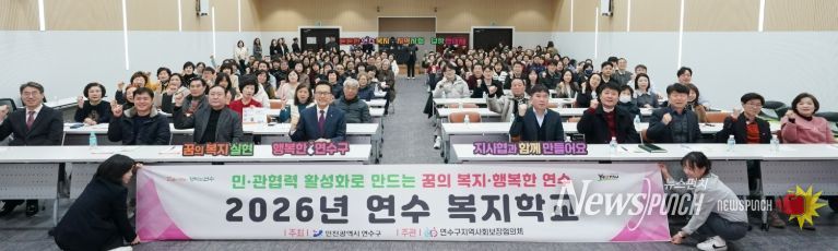 뉴스펀치 정홍균 기자 | 연수구 지역사회보장협의체(공동위원장 이재호·최호영)는 지난 6일 구청 대회의실에서 ‘민관협력 활성화를 위한 2026년 연수 복지학교’를 개최했다.