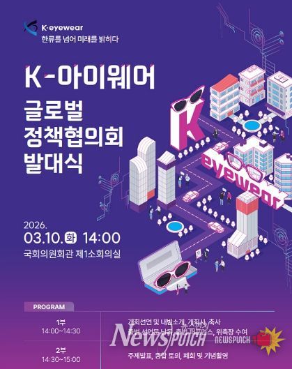 뉴스펀치 조평훈 기자 | 대구광역시는 3월 10일 오후 2시, 국회의원회관 제1소회의실에서 우재준 국회의원 주관으로 ‘K-아이웨어 글로벌 정책협의회 발대식’을 개최한다.