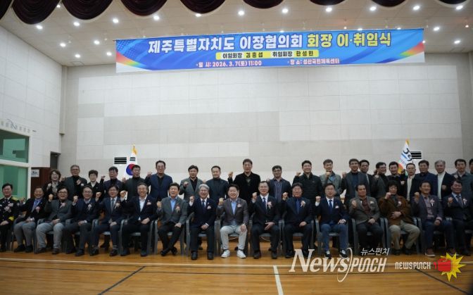 뉴스펀치 김용희 기자 | 제주특별자치도 이장협의회에서는 지난 3월 7일 성산국민체육센터에서 ‘2026년 제주특별자치도 이장협의회장(신임회장 한성민) 이·취임식’을 개최하고 새로운 도약의 시작을 알렸다.