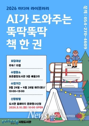 뉴스펀치 박세훈 기자 | 포항시립포은중앙도서관은 오는 24일부터 4월 28일까지 매주 화요일, 포은중앙도서관 배움2터에서 ‘2026 상반기 별찌인문교실’과 ‘미디어라이브러리’ 수업을 운영한다.