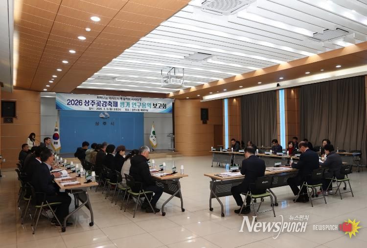 뉴스펀치 박세훈 기자 | 상주시는 3월 9일 시청 대회의실에서 상주시곶감축제추진위원회 위원, 상주시의원, 관계 공무원 등 35여 명이 참석한 가운데‘상주곶감축제’의 2026년 성과를 공유하고 향후 발전 방향을 모색하기 위해 2026 상주곶감축제 평가 연구용역 보고회를 개최했다.