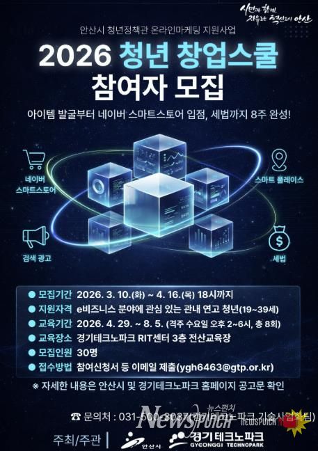뉴스펀치 박상훈 기자 | 안산시는 e비즈니스 분야 청년 창업자의 안정적인 시장 진입과 사업 운영을 지원하기 위해 ‘청년 창업스쿨’ 참여자를 모집한다고 10일 밝혔다.