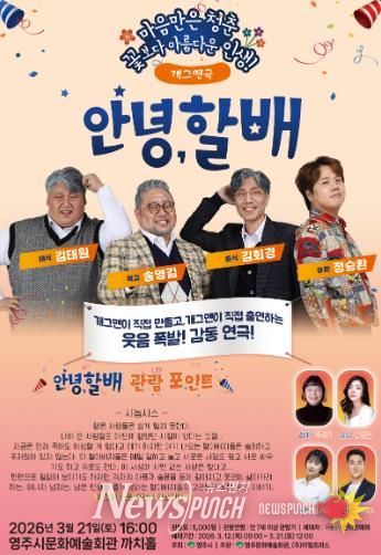 뉴스펀치 박세훈 기자 | 영주시문화예술회관은 오는 3월 21일 오후 4시, 까치홀에서 기획공연 개그 연극 ‘안녕, 할배’를 개최한다.
