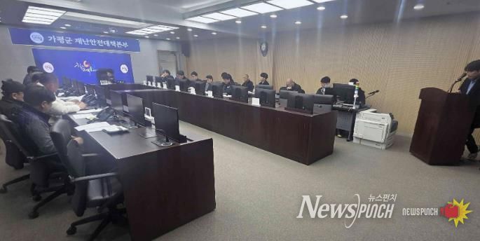 가평군은 군청 재난안전상황실에서 9일 ‘하천·계곡 구역 내 불법 점용시설 전수 재조사 실시에 따른 읍면장 회의’를 열고 하천·계곡 불법점용 조치 태스크포스(TF)를 구성해 본격적인 정비에 착수한다고 밝혔다. 이날 회의에는 김미성 부군수를 비롯해 건설도시국장, 건설과장, 6개 읍면장 등이 참석해 특별정비 추진계획을 공유하고 신속하고 철저한 추진 방안을 논의했다.