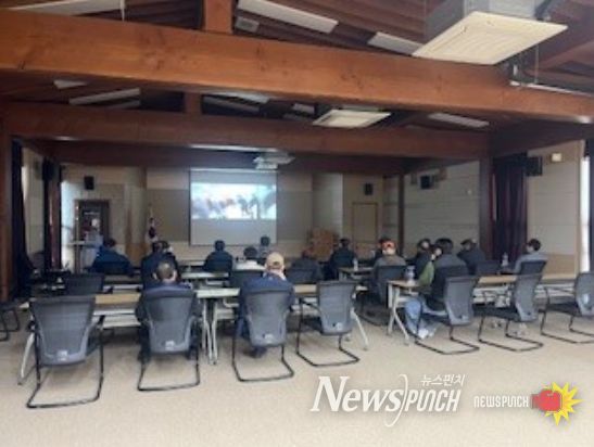 뉴스펀치 김용희 기자 | 장흥군은 지난 3일 우드랜드 목재산업지원센터에서 숲가꾸기 패트롤, 푸른숲 관리단, 경관관리단 등 총 18명의 신규 근로자를 대상으로 채용 시 안전보건교육을 실시했다고 밝혔다.