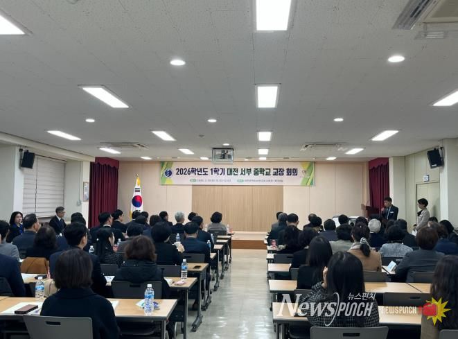 뉴스펀치 이현승 기자 | 대전서부교육지원청은 3월 10일 오전과 오후에 걸쳐 관내 중학교 교장과 교감 107명을 대상으로 ‘2026학년도 1학기 서부 중학교 교장·교감 회의’를 개최했다고 밝혔다.