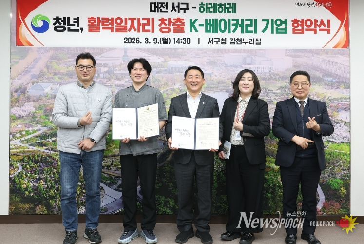 뉴스펀치 이현승 기자 | 대전 서구는 청년활력일자리창출 11번째 협약 기업으로 지역 대표 K-베이커리 하레하레(대표 이창민)를 선정하고 ‘2026년 청년 활력 일자리 창출’을 위한 업무협약을 체결했다고 10일 밝혔다.