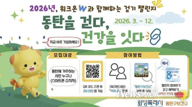 이번 사업은 모바일 걷기 앱 ‘워크온(WalkON)’을 활용해 진행된다. 스마트폰을 사용하는 동탄구 주민이라면 누구나 무료로 참여할 수 있으며, 앱 설치 후 ‘동탄구보건소 공식 커뮤니티’에 가입하면 다양한 걷기 챌린지에 참여할 수 있다.