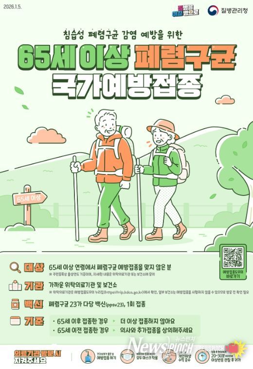 뉴스펀치 박세훈 기자 | 울진군은 65세 이상 어르신을 대상으로 폐렴구균 예방접종을 연중 실시한다.