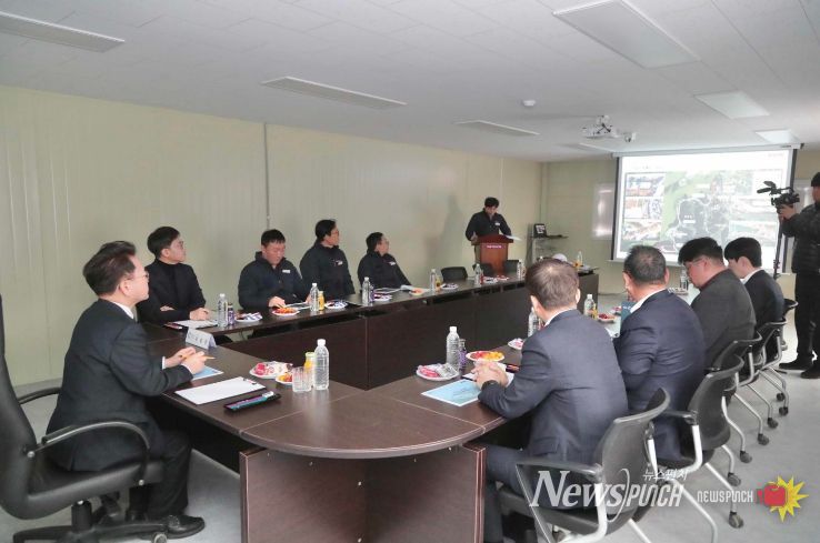 육 시장은 공사 착공을 앞두고 현장사무소에서 사업 추진 현황에 대한 브리핑을 받은 뒤 공사 예정지와 주요 시설 설치 예정 구간을 둘러보며 공사 준비 상황과 안전 관리 실태를 점검했다. 이 자리에서 육동한 시장은 지역 업체의 장비와 소재, 부품 등을 사용할 것을 강조하고 해빙기 지반 약화 등으로 발생할 수 있는 안전사고 예방을 당부했다.