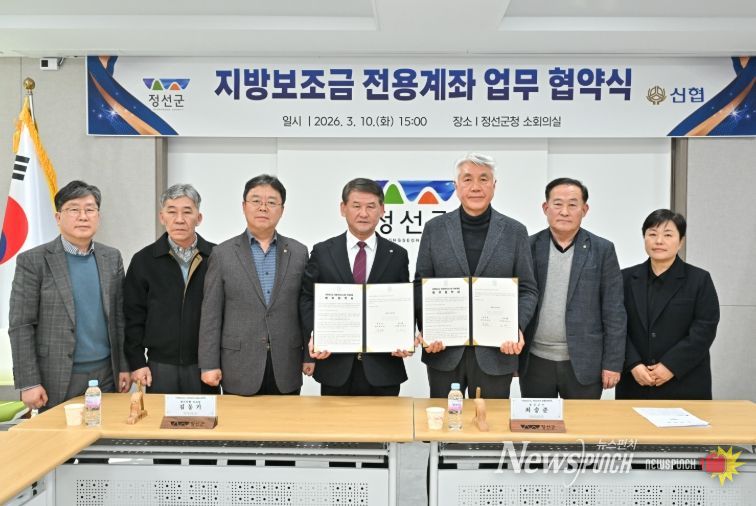 정선군은 10일 군청에서 정선신협과 지방보조금 통합관리시스템 전용계좌 운용을 위한 업무협약을 체결했다.