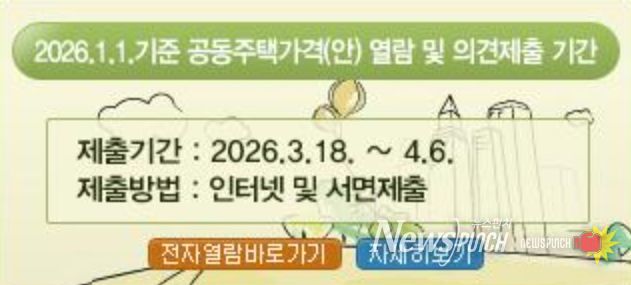 뉴스펀치 박상훈 기자 | 이천시는 개별주택의 특성과 표준주택의 특성을 비교해 주택가격 비준표를 토대로 산정된 2026년 1월 1일 기준 관내 단독 및 다가구 주택 등 18,155호에 대한 개별주택가격에 대하여 열람 및 의견을 청취한다고 밝혔다.