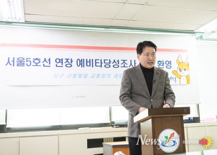 뉴스펀치 정홍균 기자 | 강범석 서구청장은 10일 오후 3시 서울5호선 연장사업의 예비타당성조사 통과 소식에 대해 깊은 환영의 뜻을 밝혔다. 서울 5호선 연장사업은 수도권 서북부 지역 주민들의 오랜 숙원이자, 지역균형발전의 핵심 사업으로 평가받아 왔다.